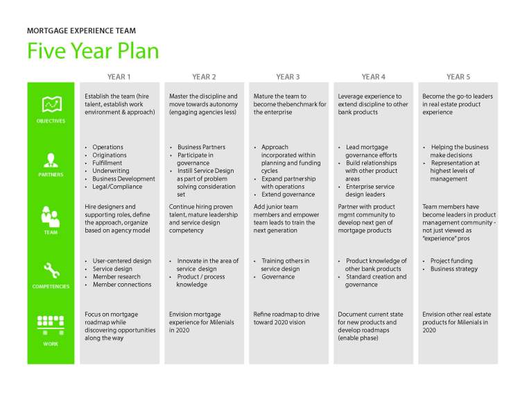Establishing a vision towards the goals set for the team, product or company is a strength. It comes from listening, understanding, then articulating through story telling and creating a roadmap on how to get to the target state. Creating a plan, developing a maturity model, establishing a pathway, providing repeatable empathy anchors… enables others to be able to support and advocate for the way forward.