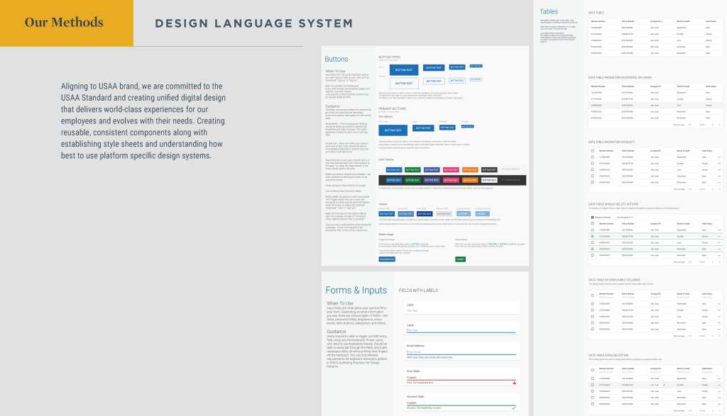 We not only looked at specific interactions, but how the suite of software solutions able to exist cohesively with other branded, custom in-house developed interactions. An employee Design Language System was being created to align as closely as possible the same modern design principles embedded in the member (customer) facing Design Language. Utilizing the same component approach and reuse strategy, establishing design style guides for particular platforms, or at the very least a playbook to capture design decisions for specific white glove software implementations.