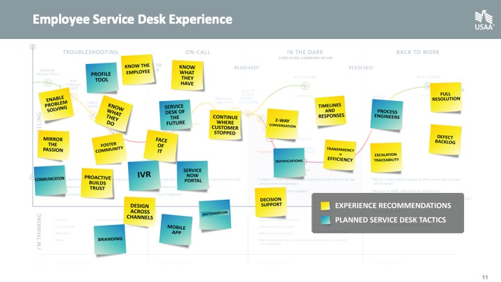 Working with leadership, we were able to identify additional areas to focus on and prioritize, in addition to initiatives already slated by IT leadership. This pivotal research and journey map continues to influence the Service Desk strategy, years after conducted and communicated.